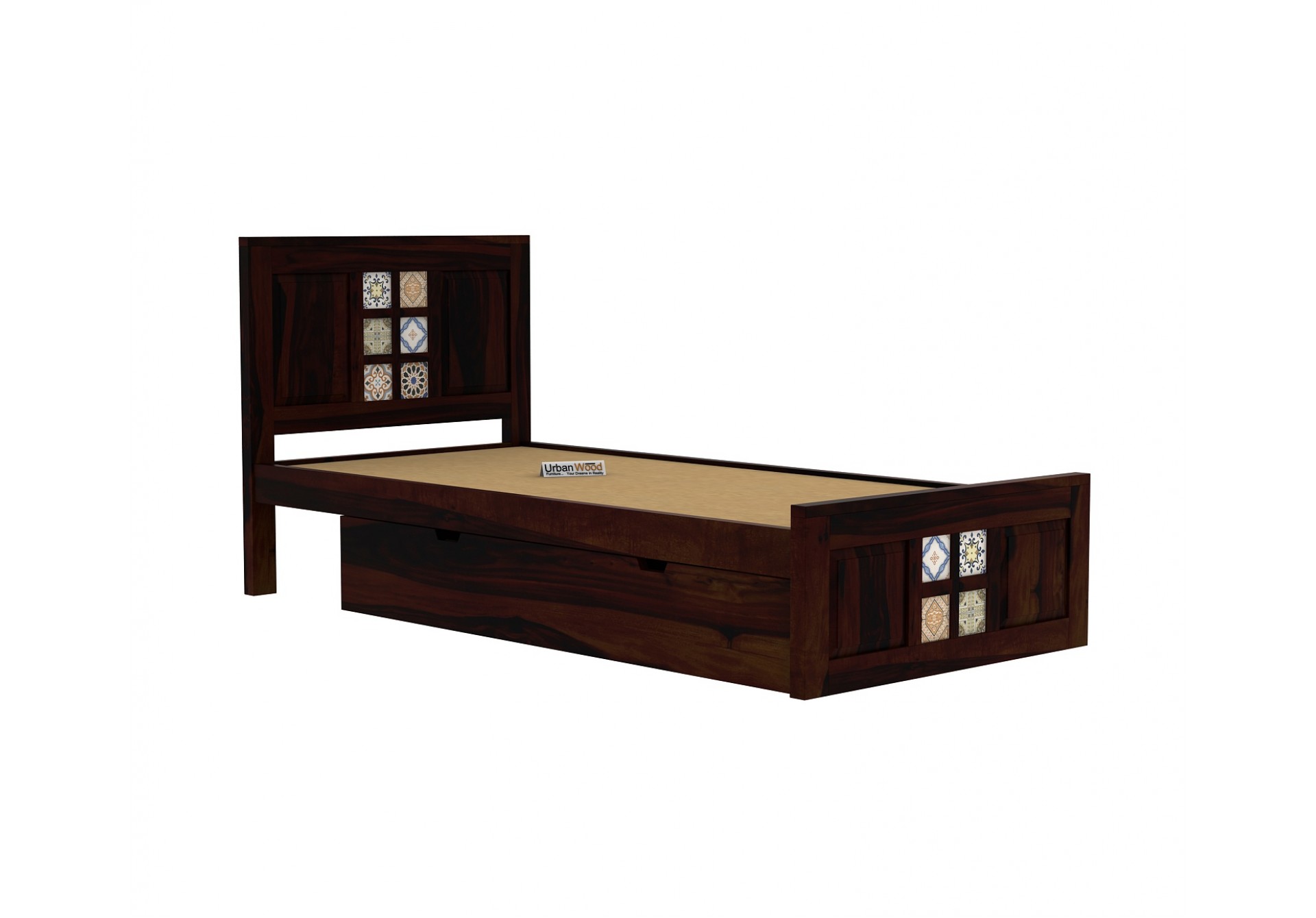 Generic Name -Relay Single Bed With Drawer Storage ( Walnut Finish )