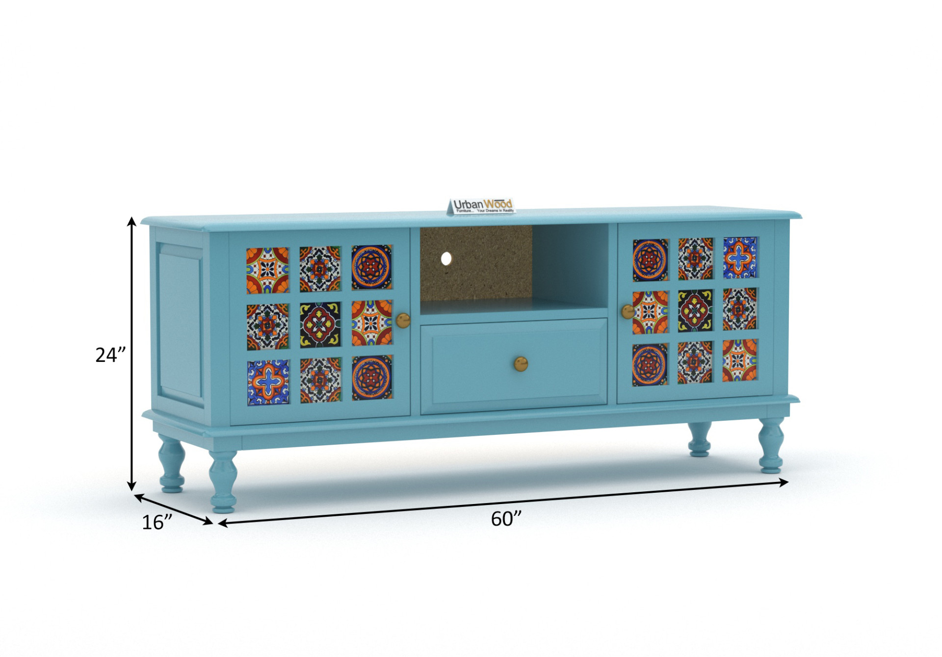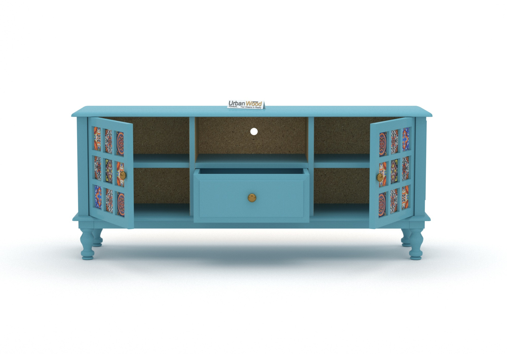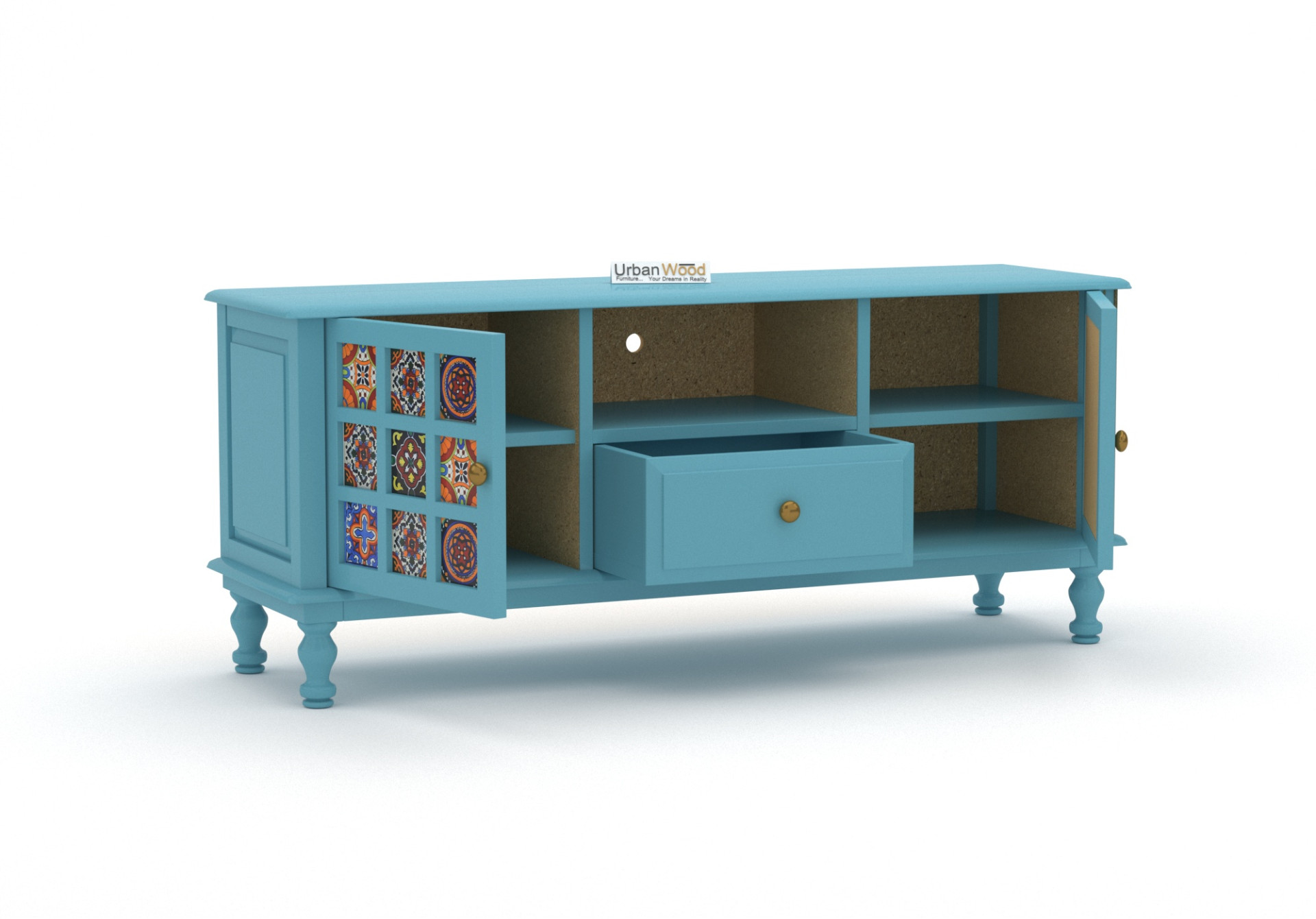 Generic Name -Relay Solid Wood TV Unit (Sky Blue)