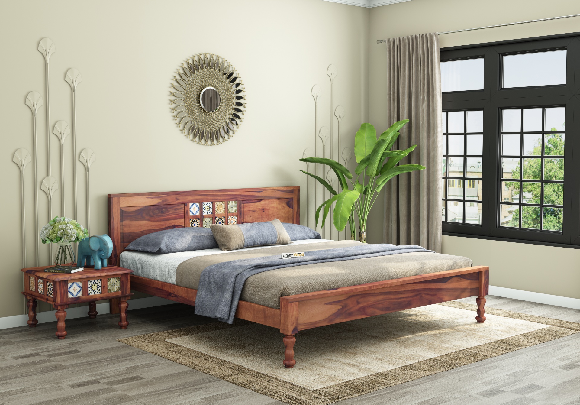 Generic Name -Relay Wooden Bed Without Storage ( King Size, Teak Finish )