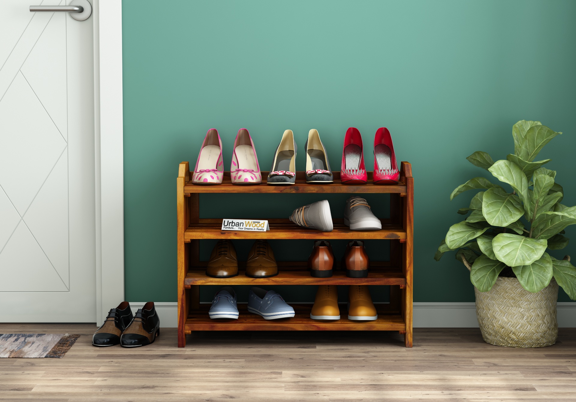 4 tier shoe rack gives you ample space to place your footwear organized and unpiled. Available in 3 exquisite finishes honey, teak, and walnut. Go for the one that matches your decor.