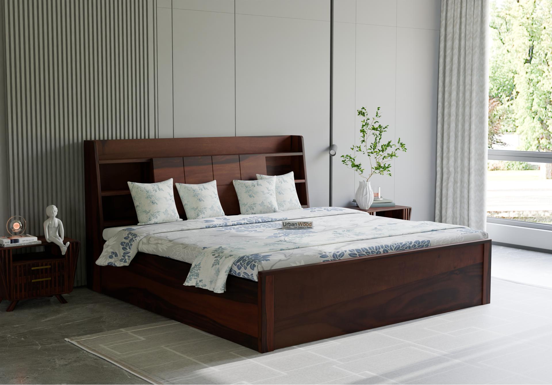 Sheeba Box Storage Bed (Queen Size, Walnut Finish)