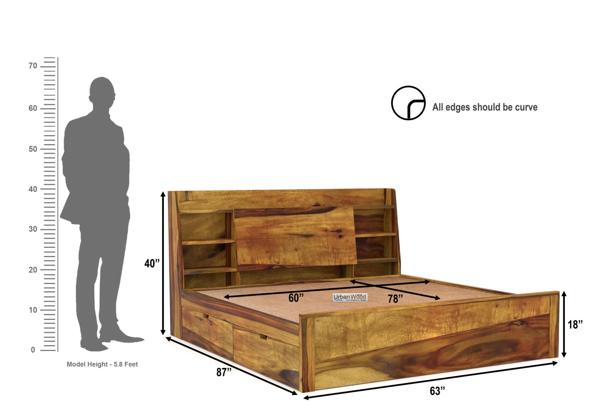 Sheeba Drawer Storage Bed (Queen Size, Lite Honey Finish)