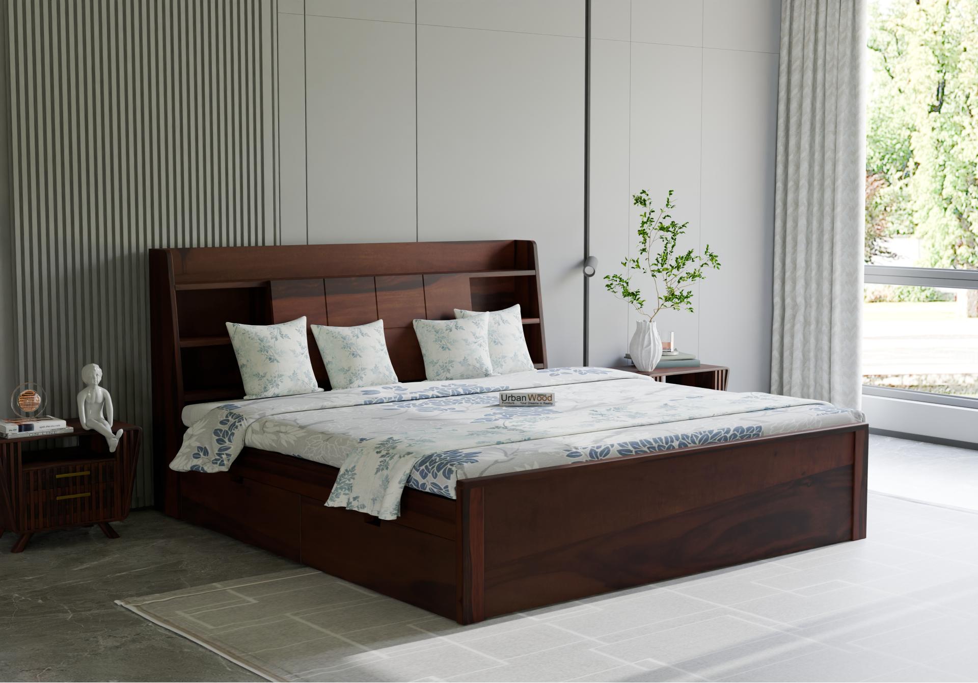 Sheeba Drawer Storage Bed (Queen Size, Walnut Finish)