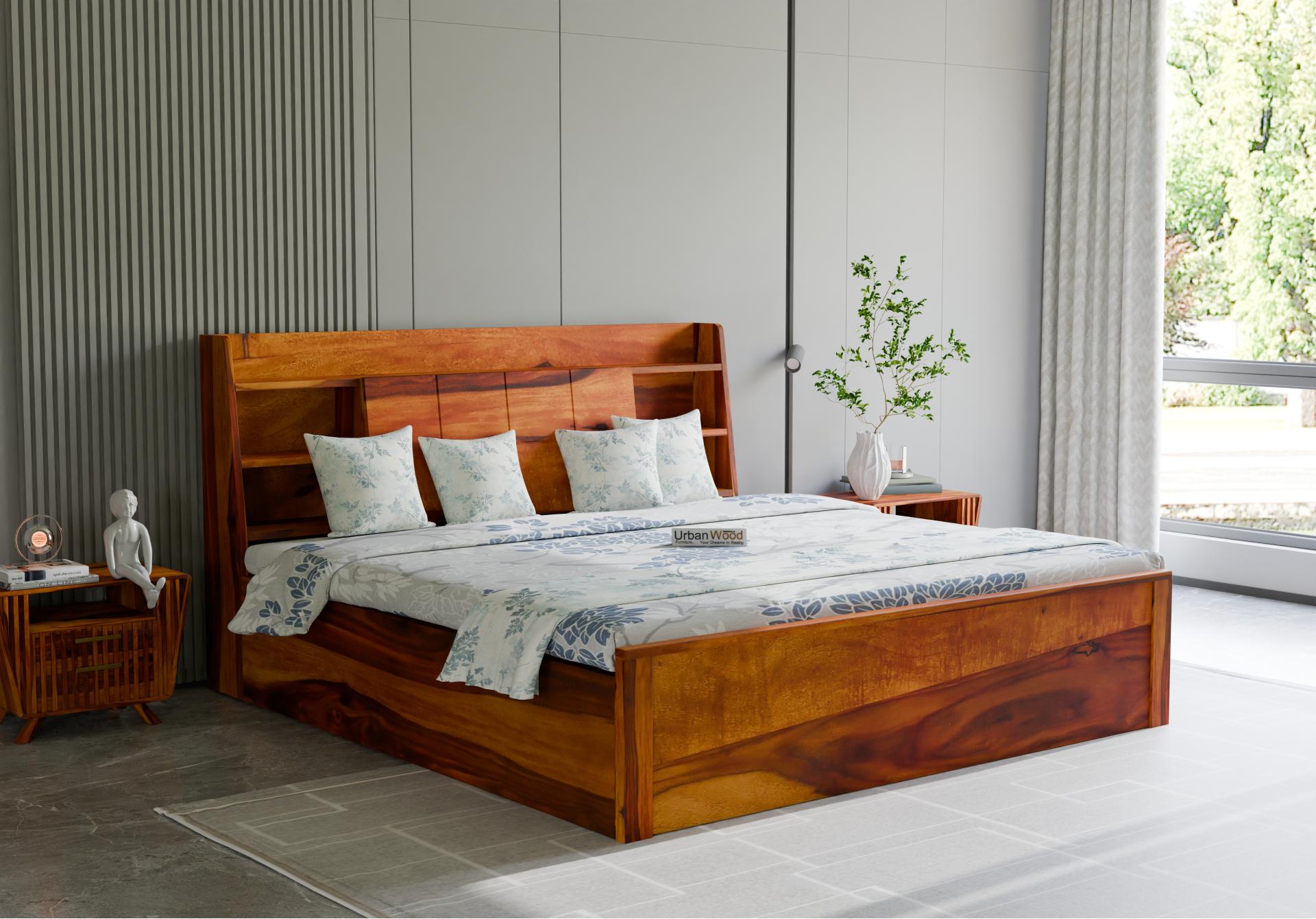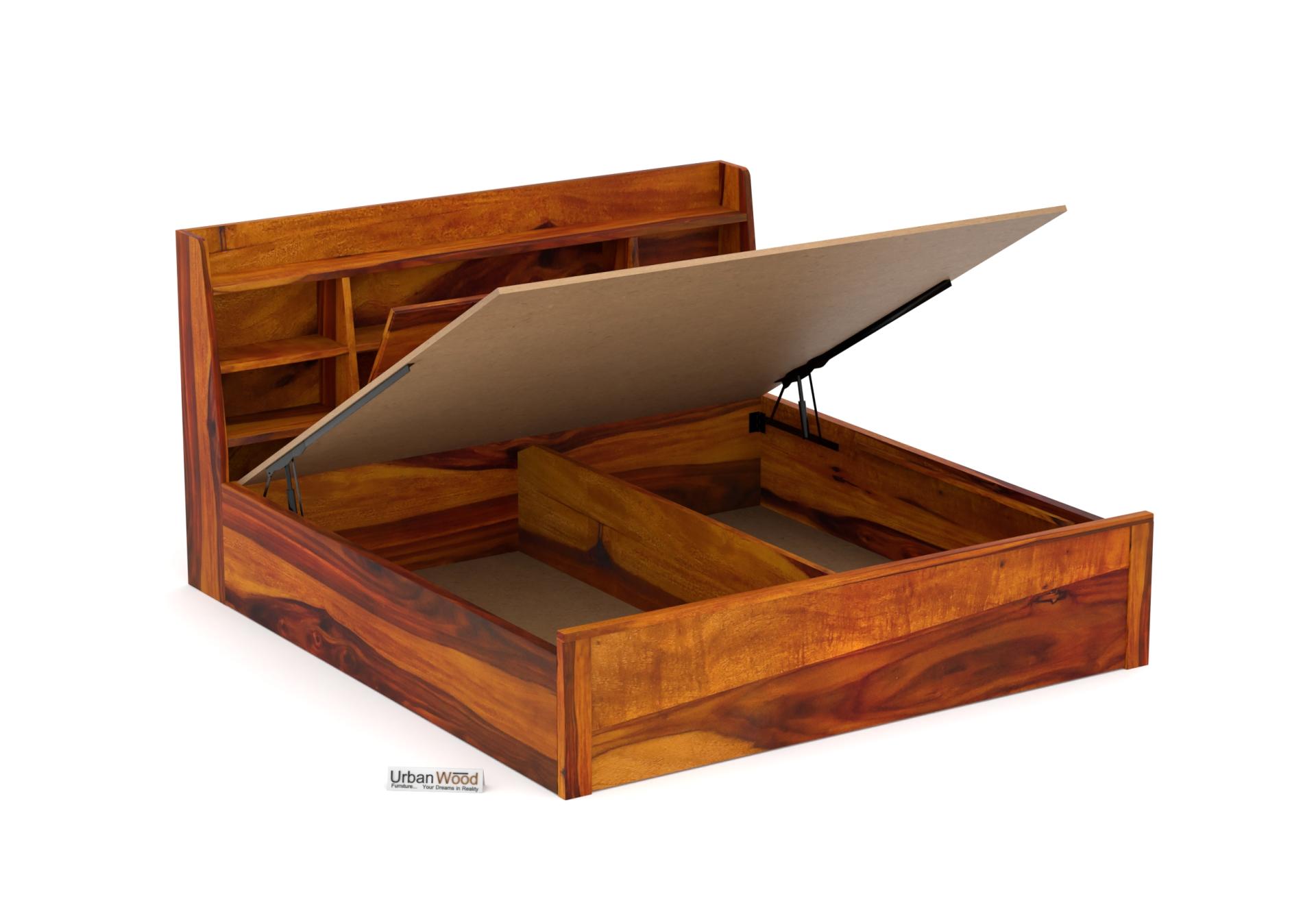 Sheeba Hydraulic Storage Bed (Queen Size, Honey Finish)
