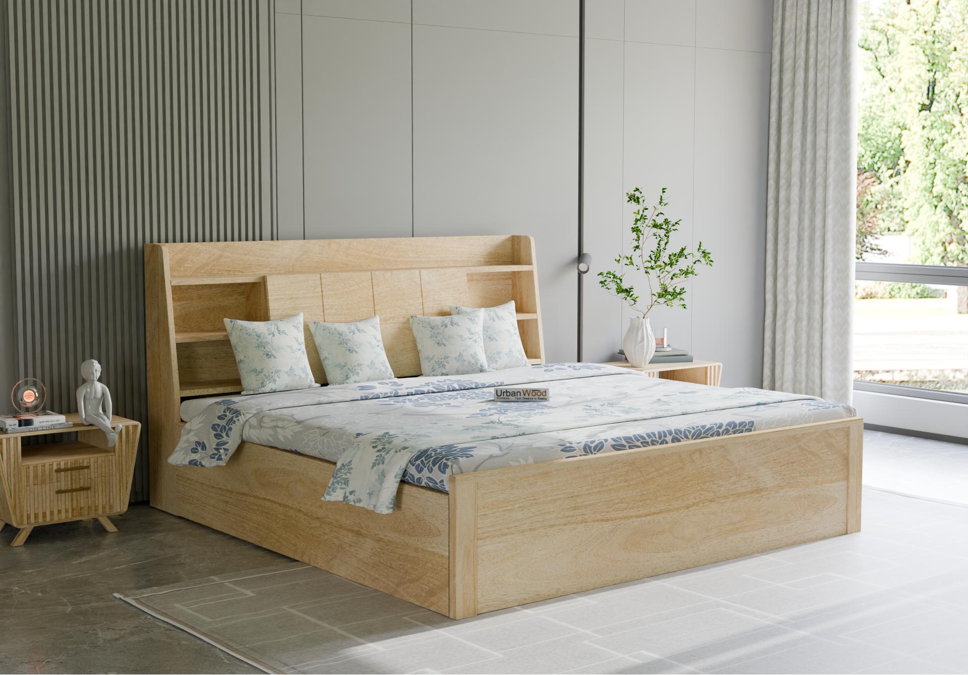 Sheeba Hydraulic Storage Bed (Queen Size, Natural Finish)