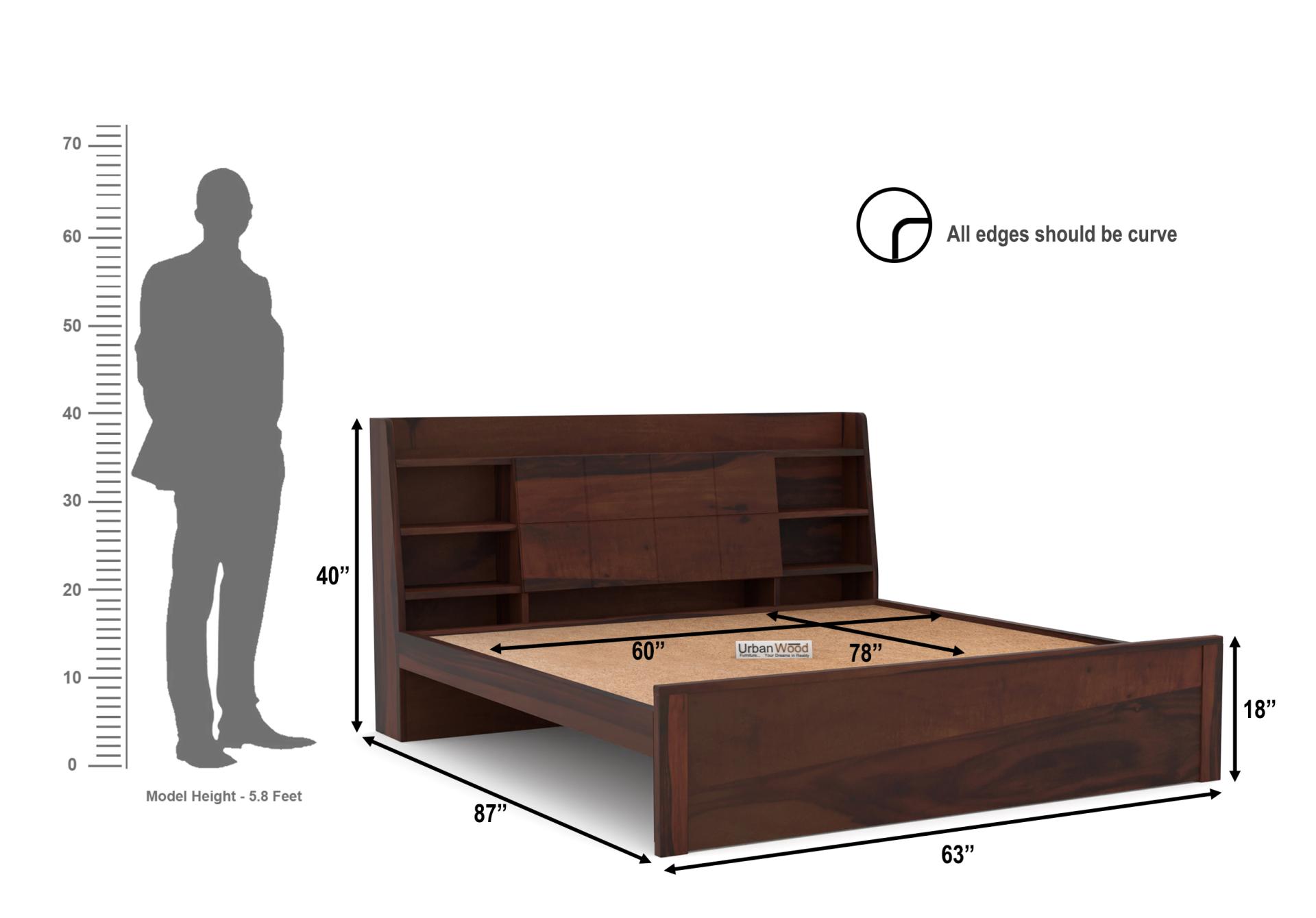 Generic Name -Sheeba Without Storage Bed (Queen Size, Walnut Finish)