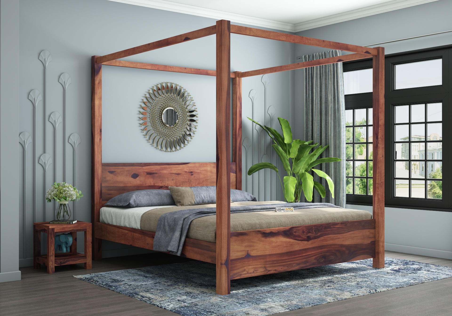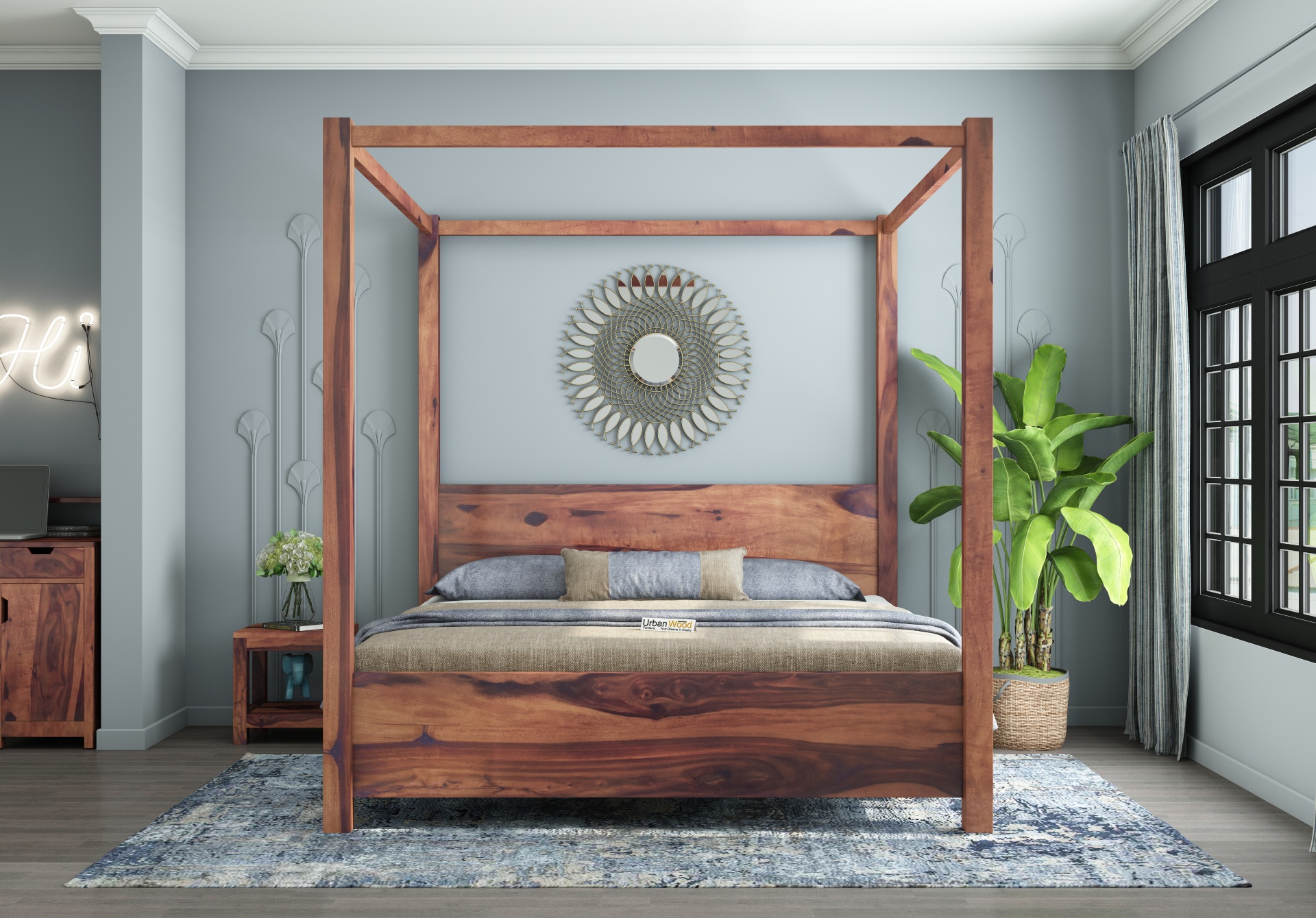 You can opt for any of the three finishes honey, teak, or walnut. Also, you can pair it with beautiful curtains to elevate the beauty of the room.