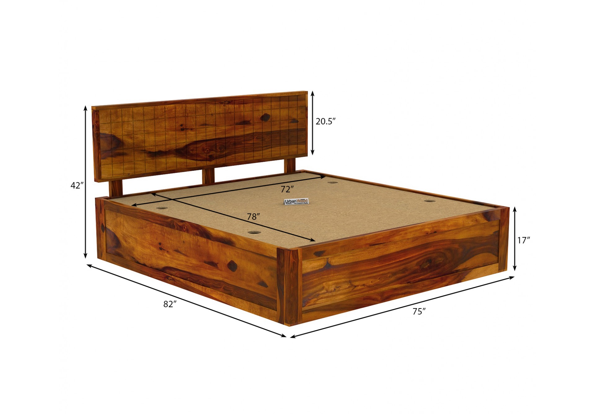 Generic Name -Solic Wooden Bed With Box Storage (King Size , Honey Finish)