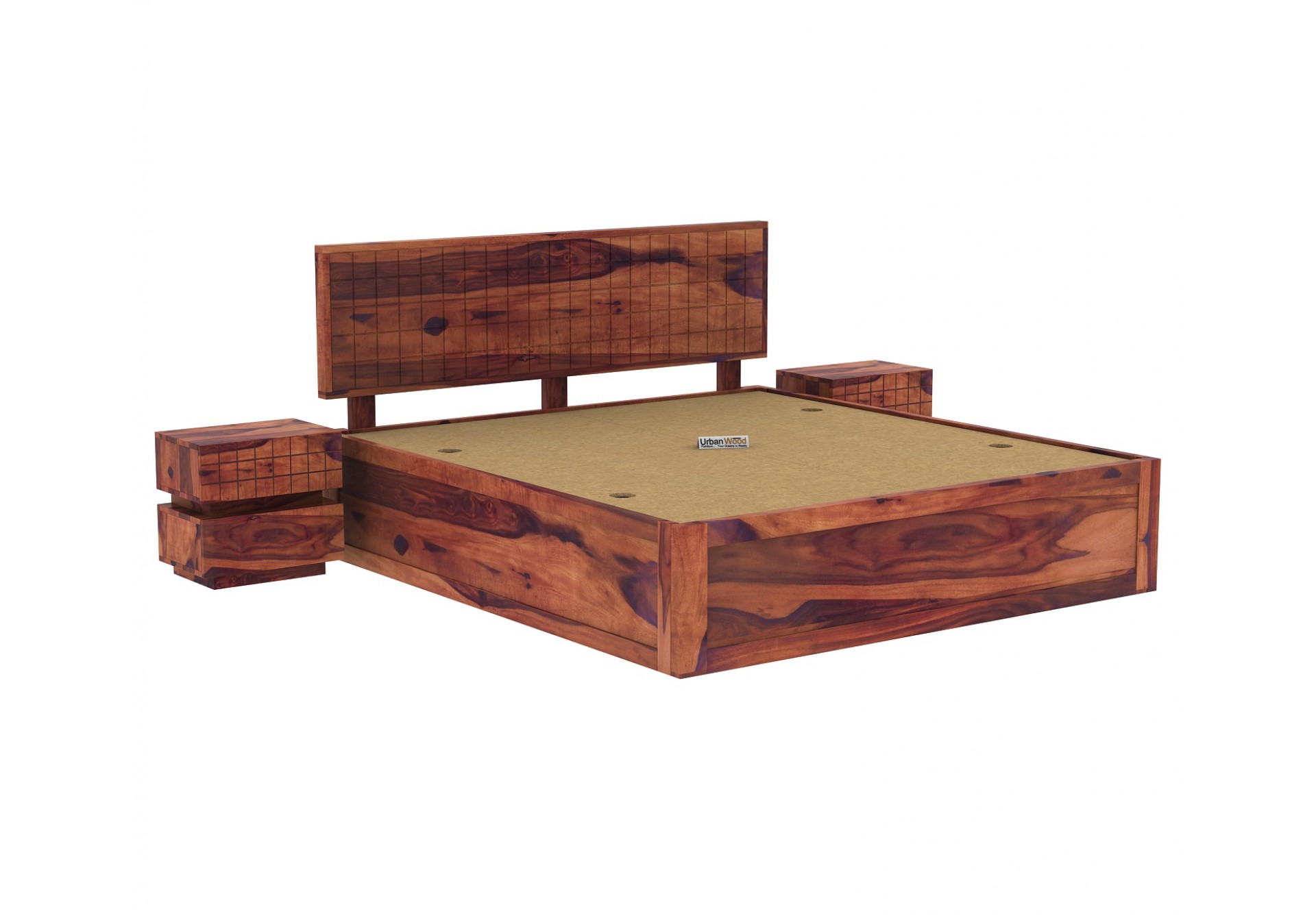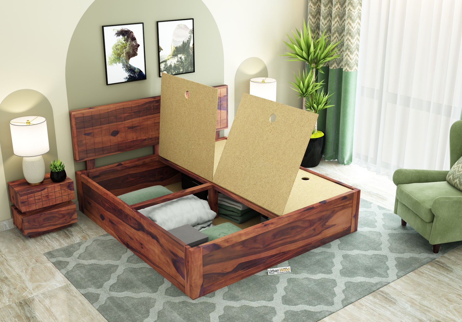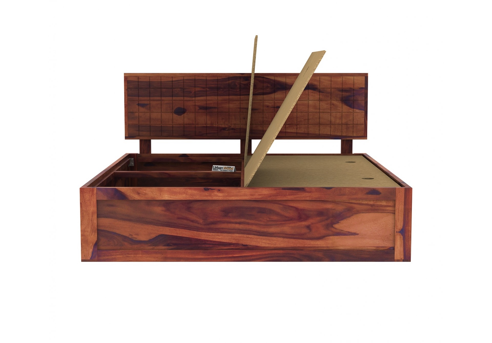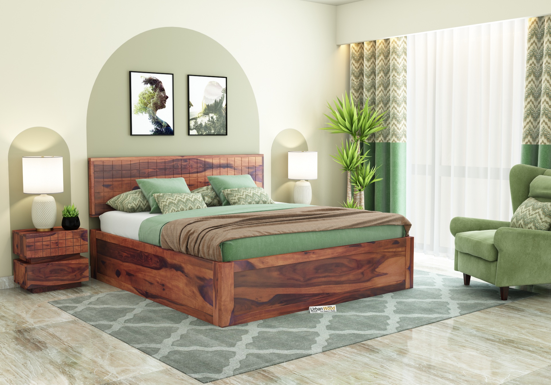 Sheesham Wood Bed with Box Storage is a sleek minimal bed. The use of solid Sheesham wood makes it sturdy and long lasting. The finish of the bed is a natural honey matte polish.