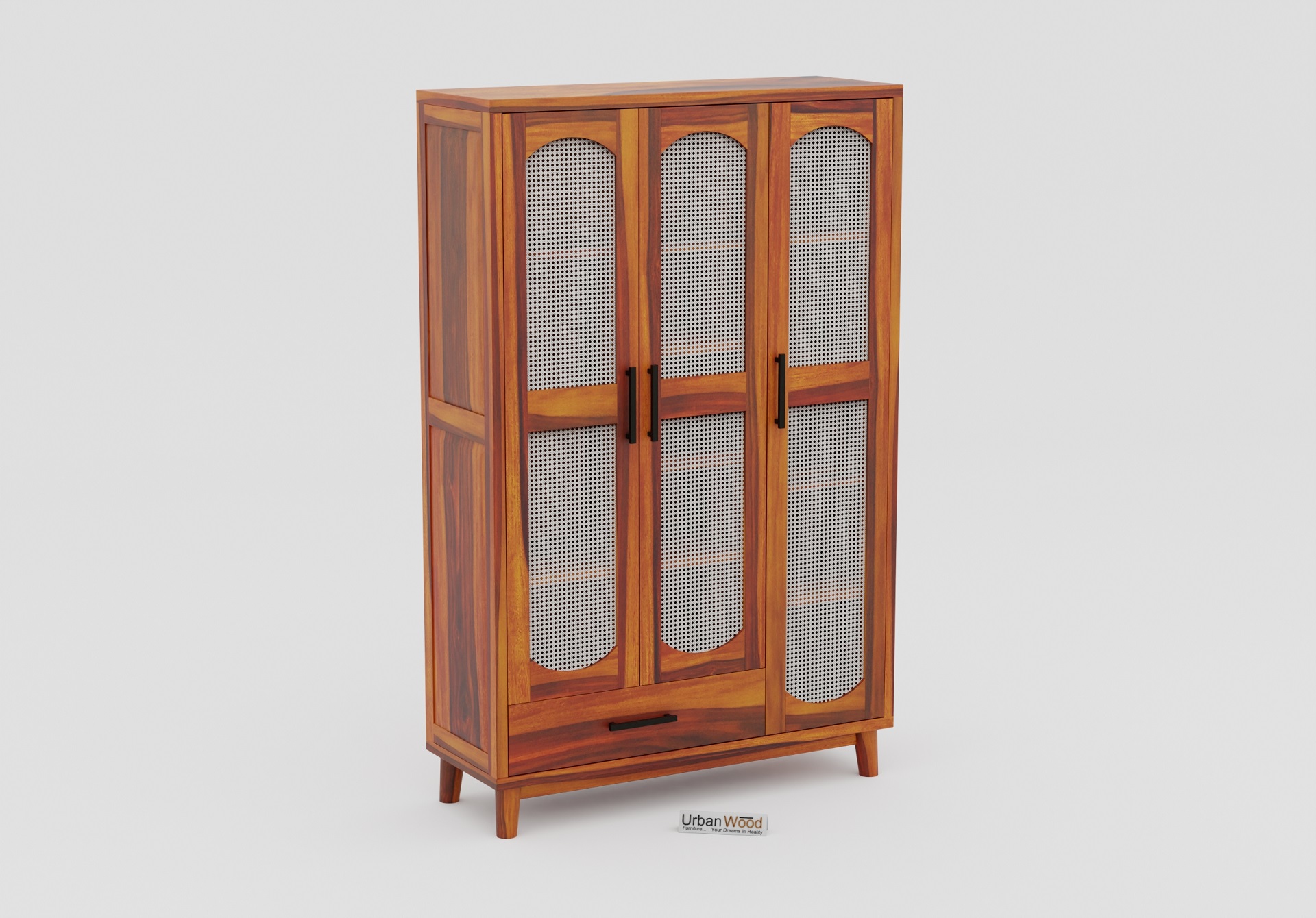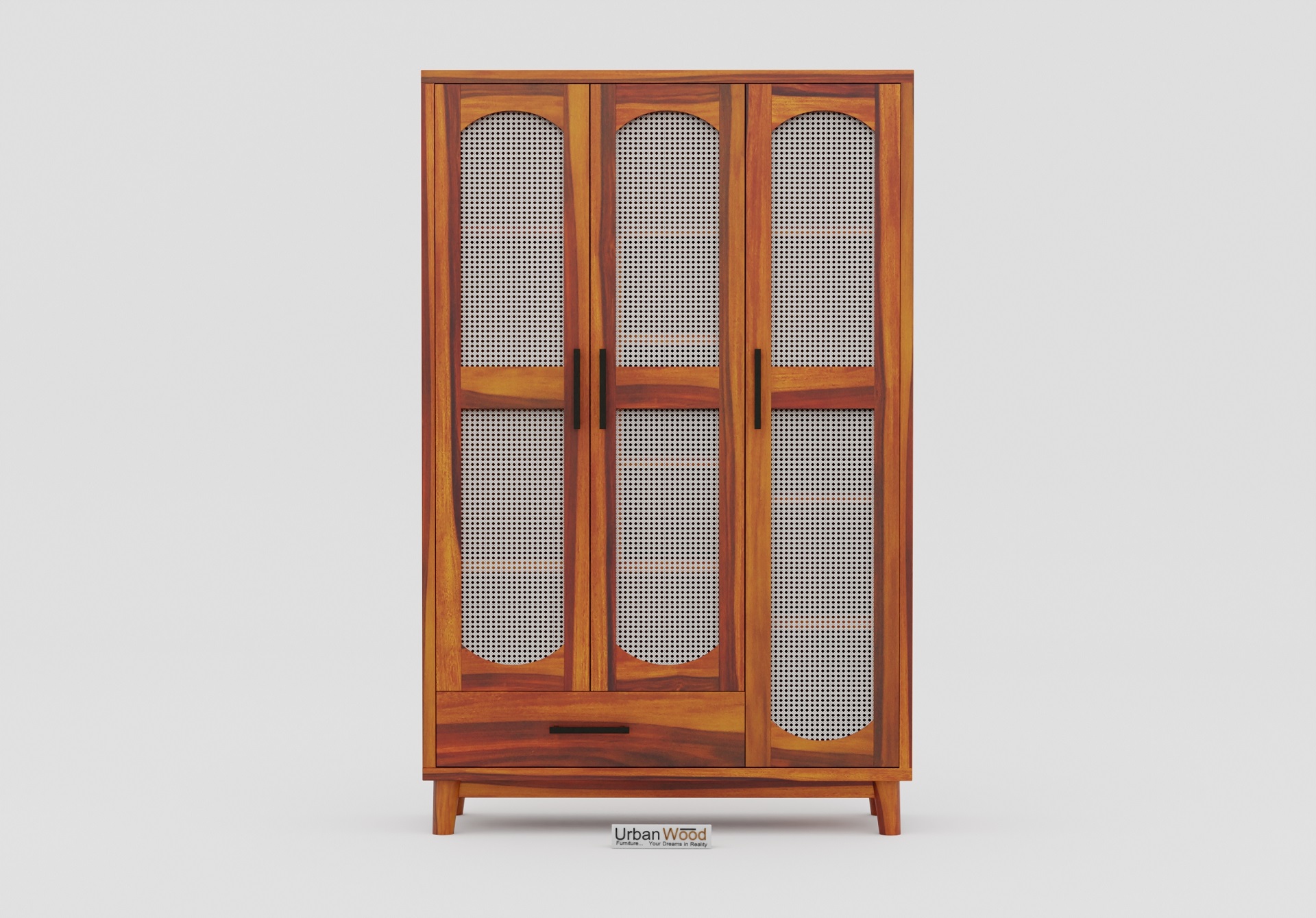 Specter 3 Door Wooden Wardrobe (Honey Finish)