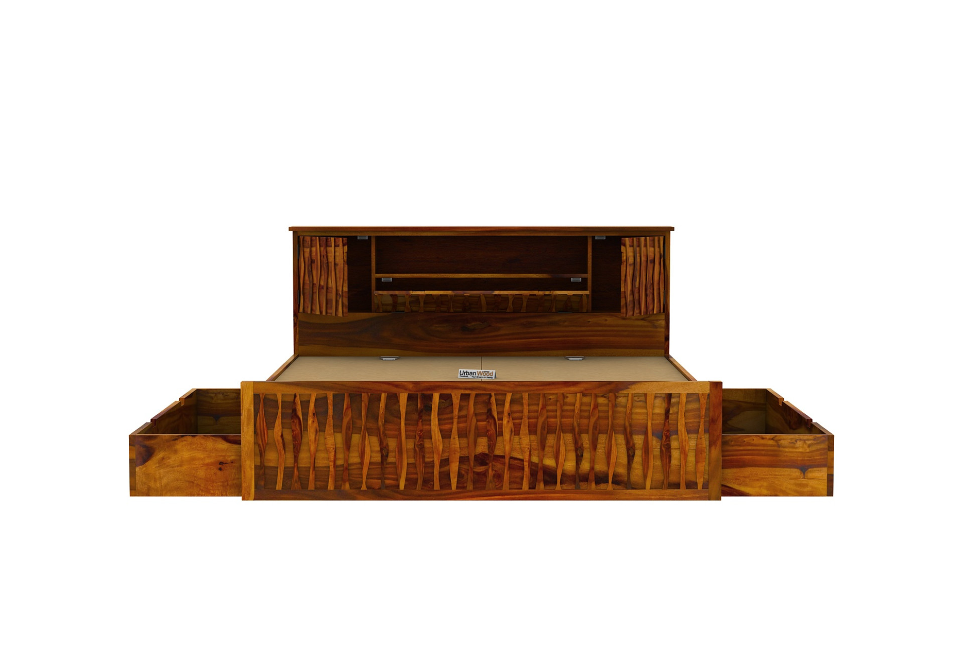 Made of premium quality Sheesham wood this bed is durable and sturdy. Available in 3 different finish options teak, walnut and honey to choose from.