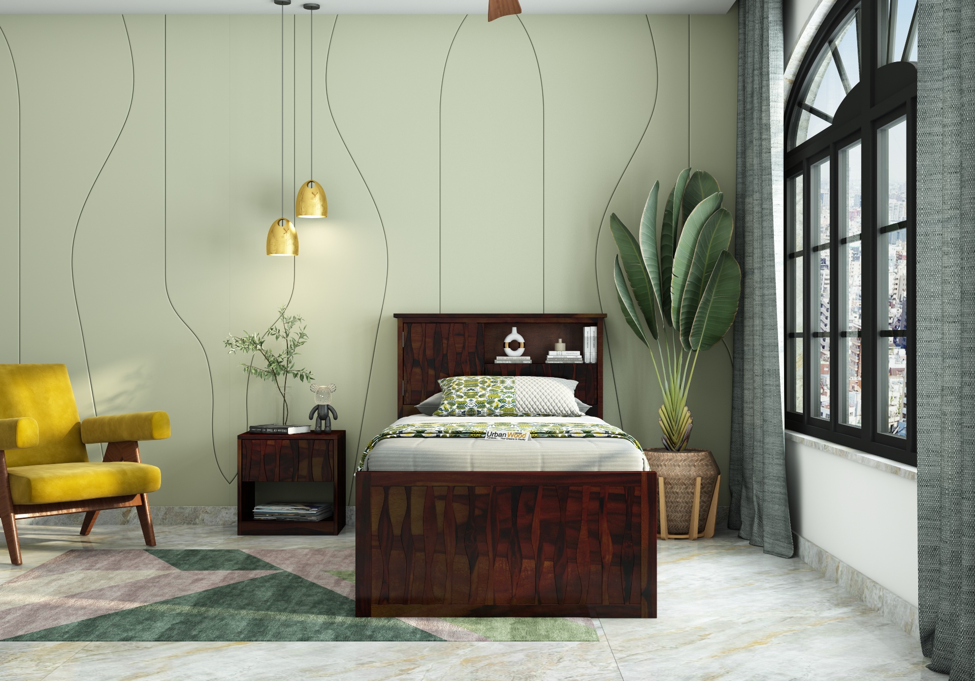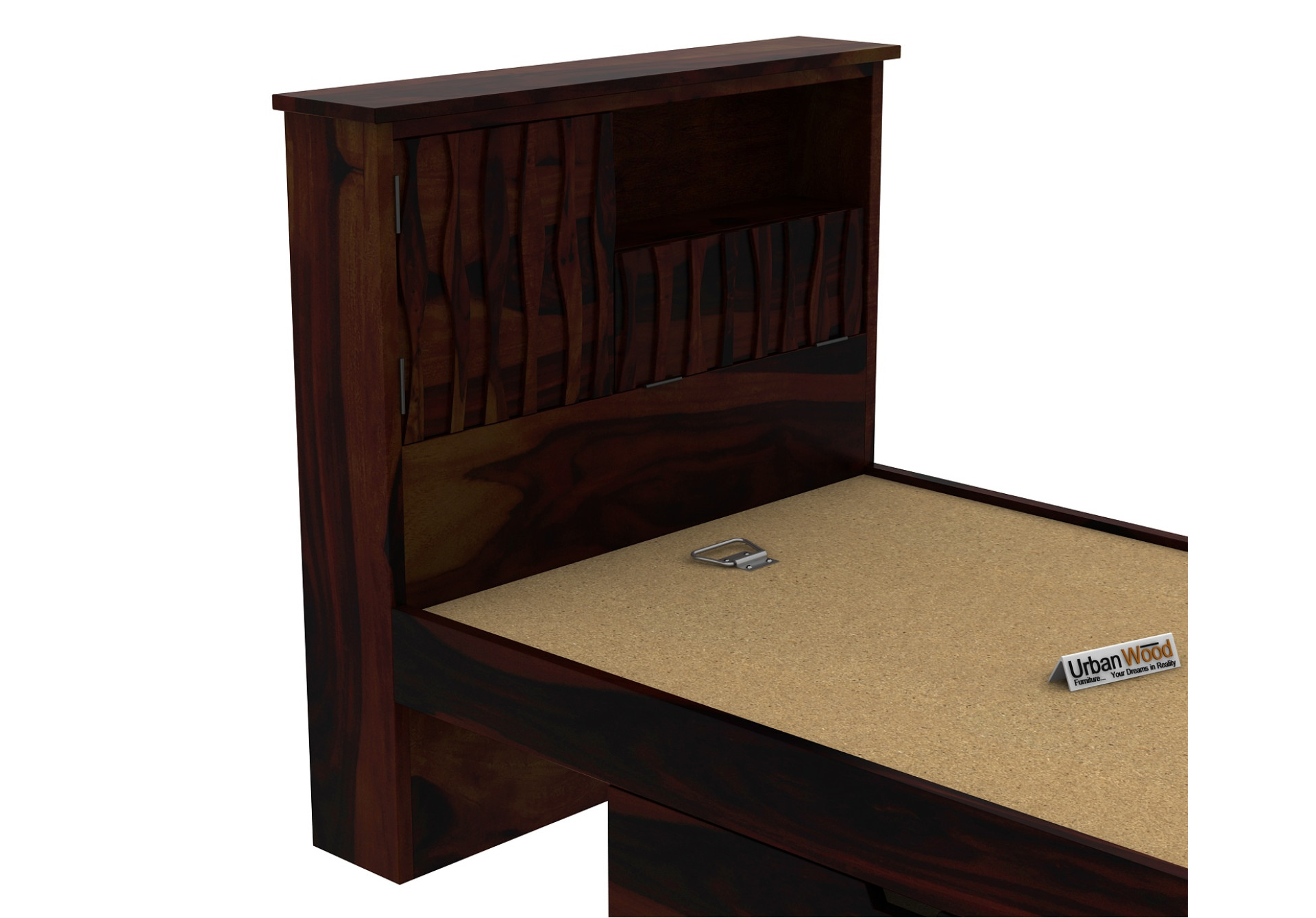 Made of premium quality Sheesham wood this bed is durable and sturdy. Available in 3 different finish options teak, walnut, and honey to choose from.