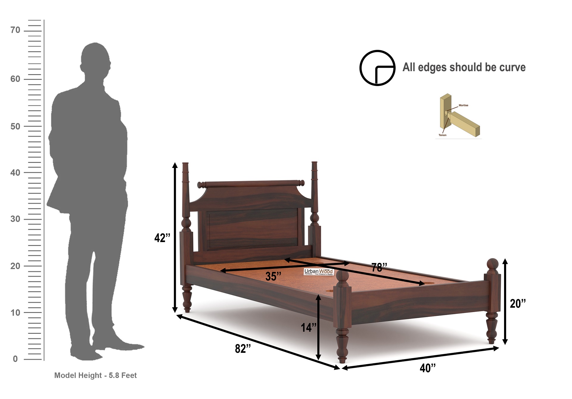 Generic Name -Theo Single Bed Without Storage (Walnut Finish)