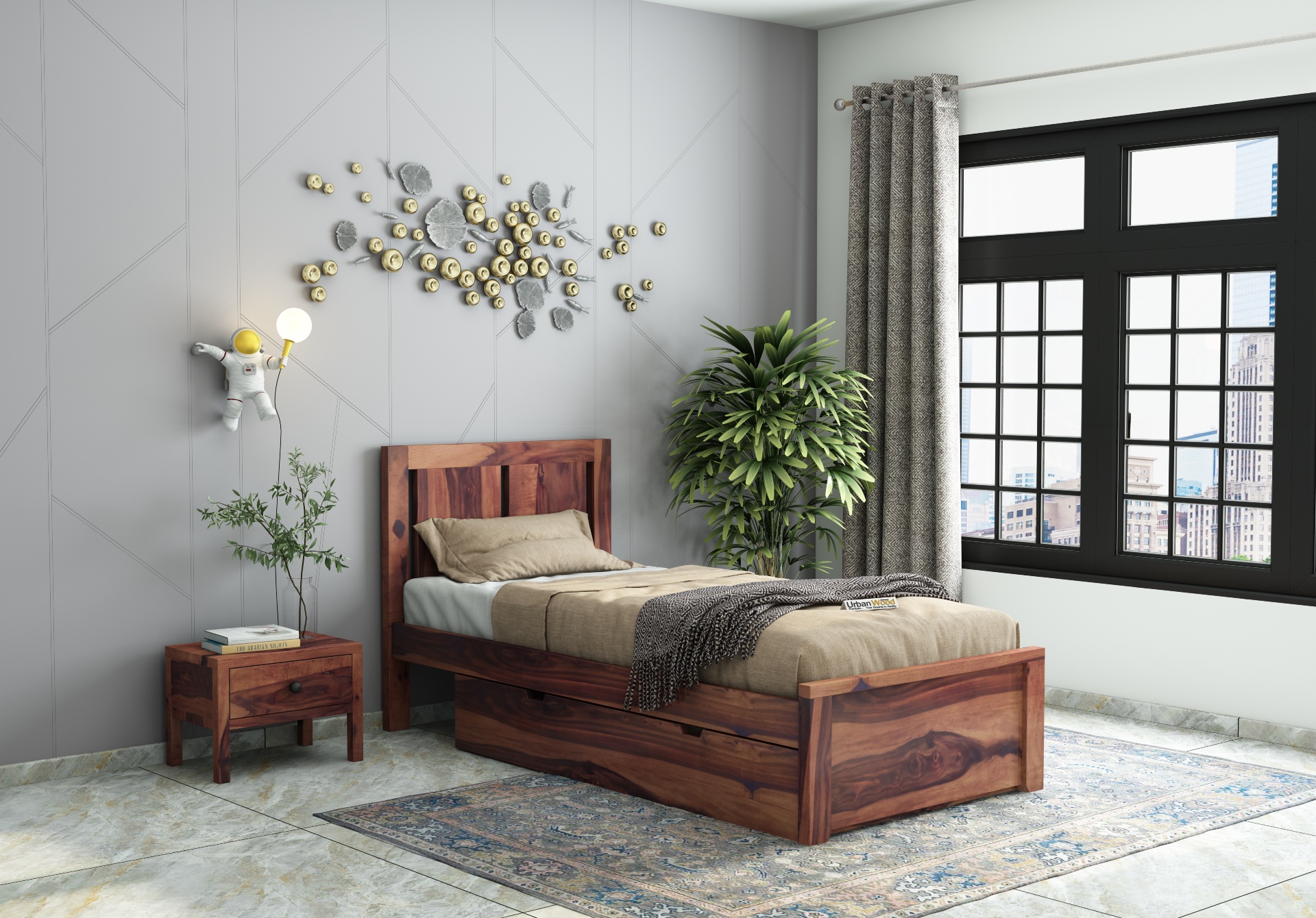 Generic Name -Topaz Single Bed With Drawer Storage ( Teak Finish )