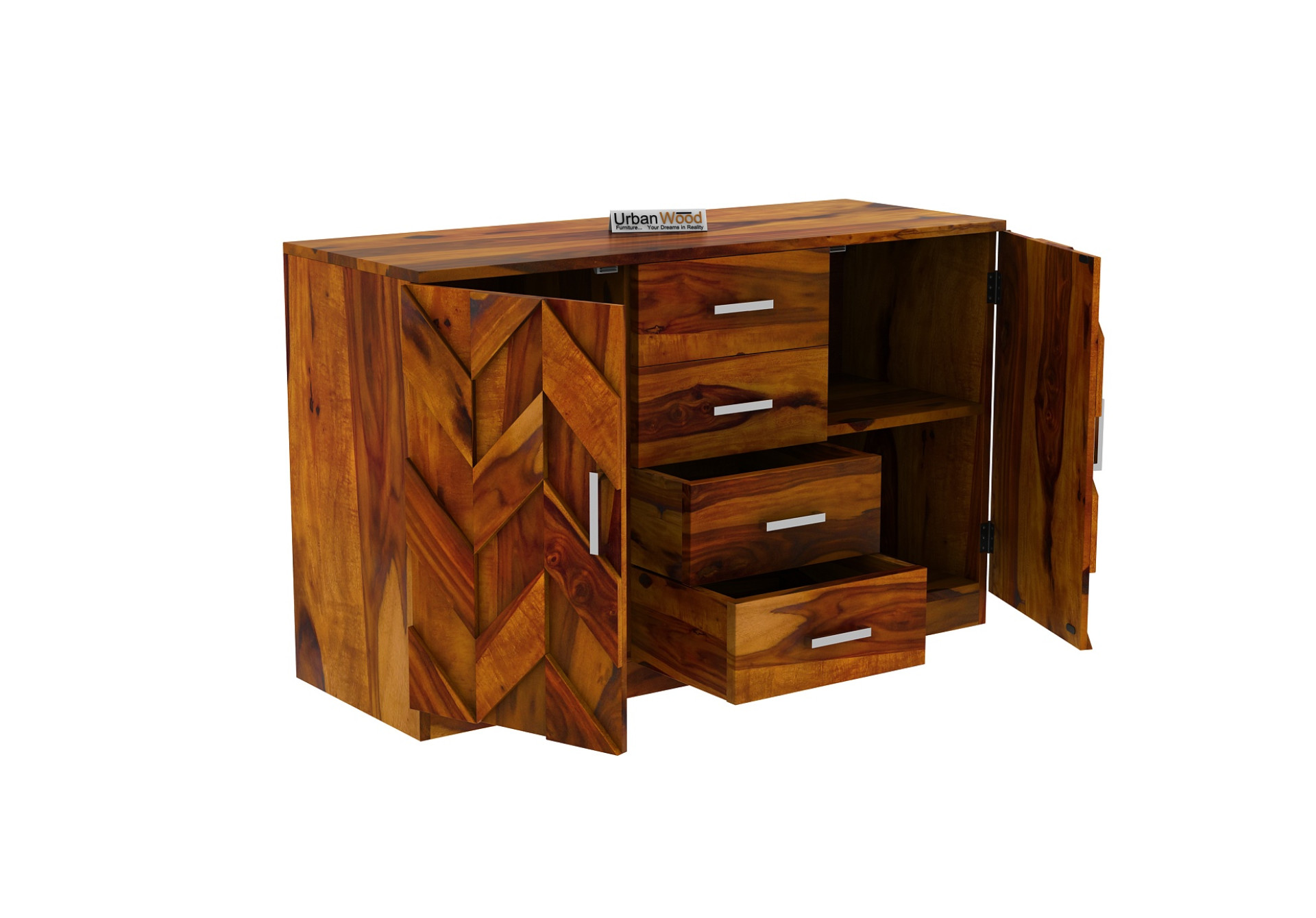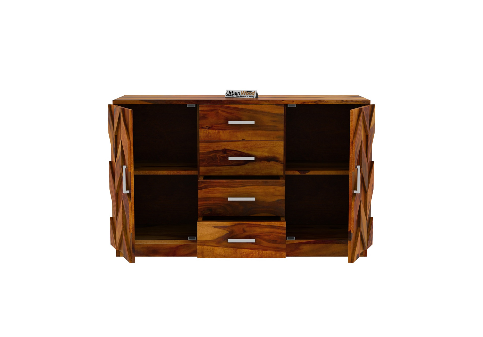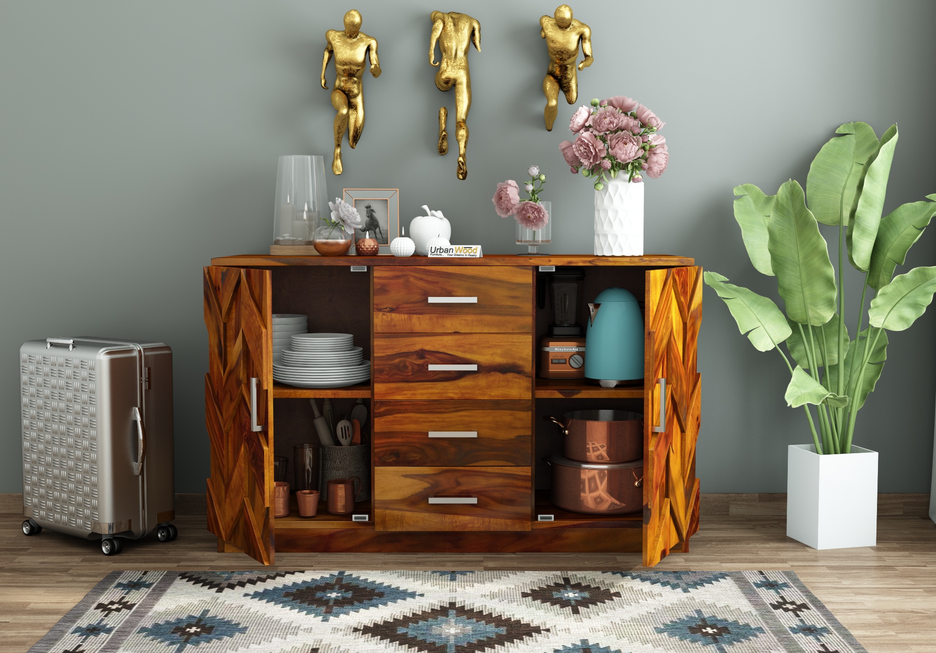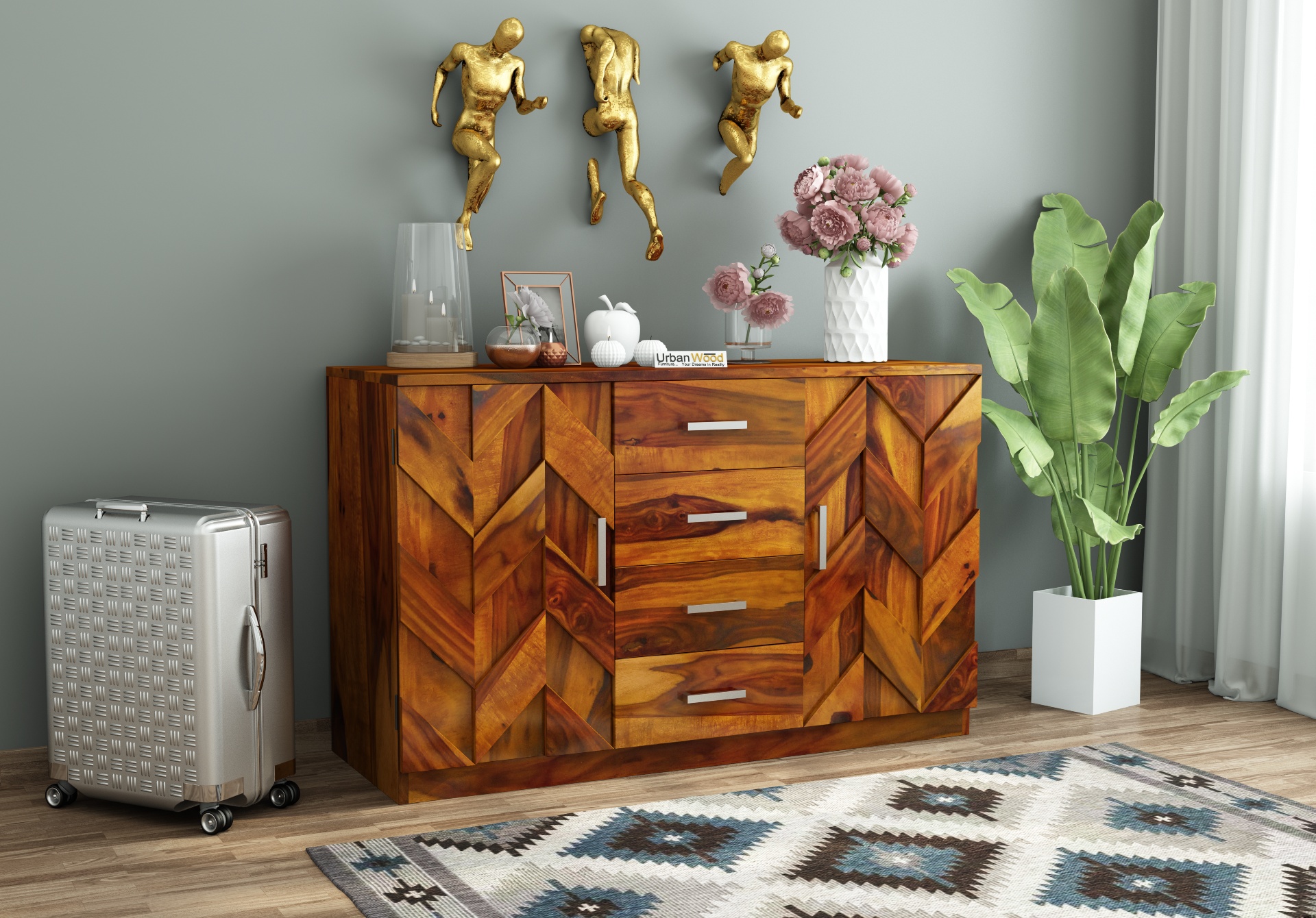 The Trace side board is the best-selling item on UrbanWood. Its design is stunning, with sheesham wood verdure.