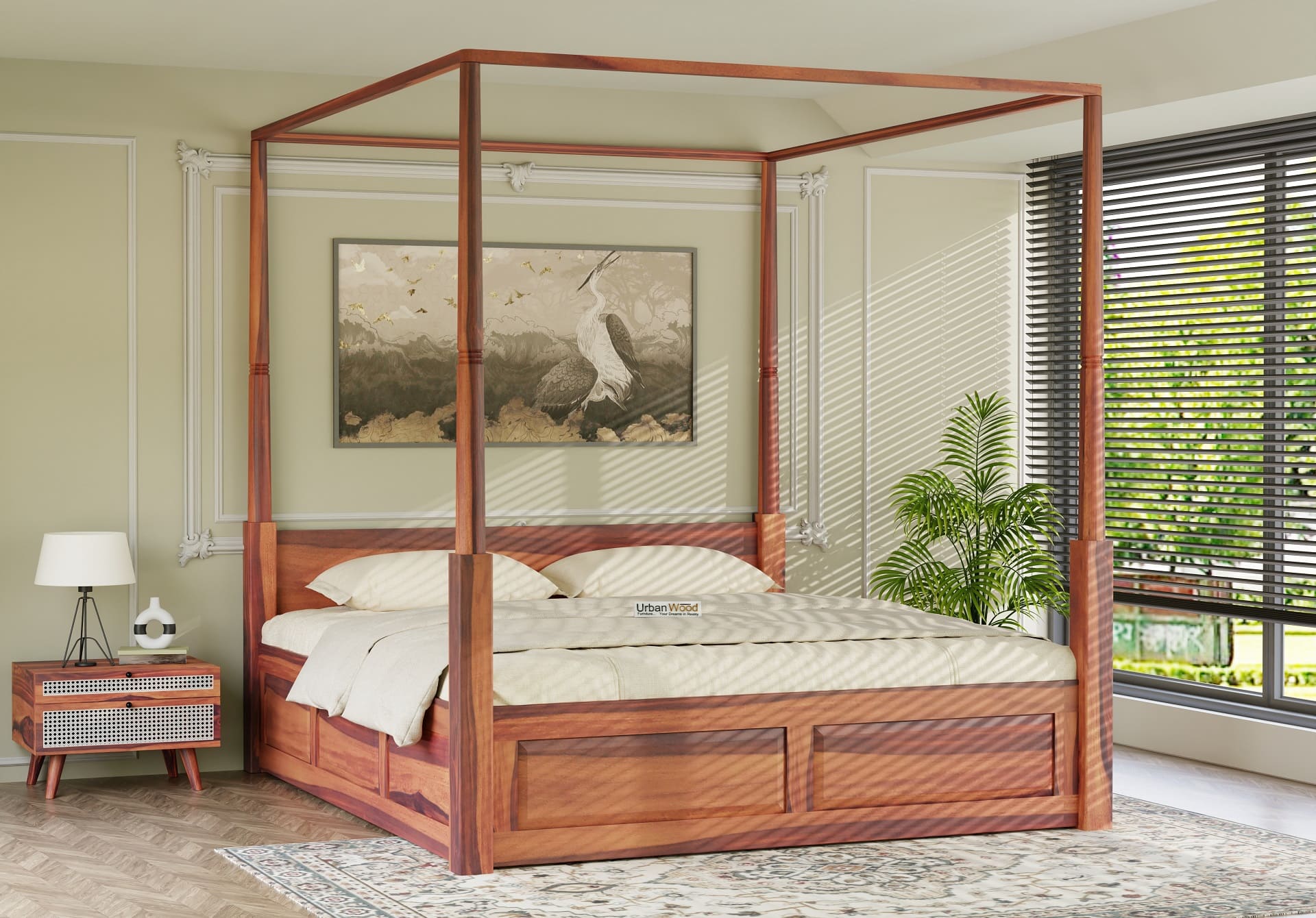 Tuscan Poster Bed With Hydraulic Storage (King Size, Teak Finish)