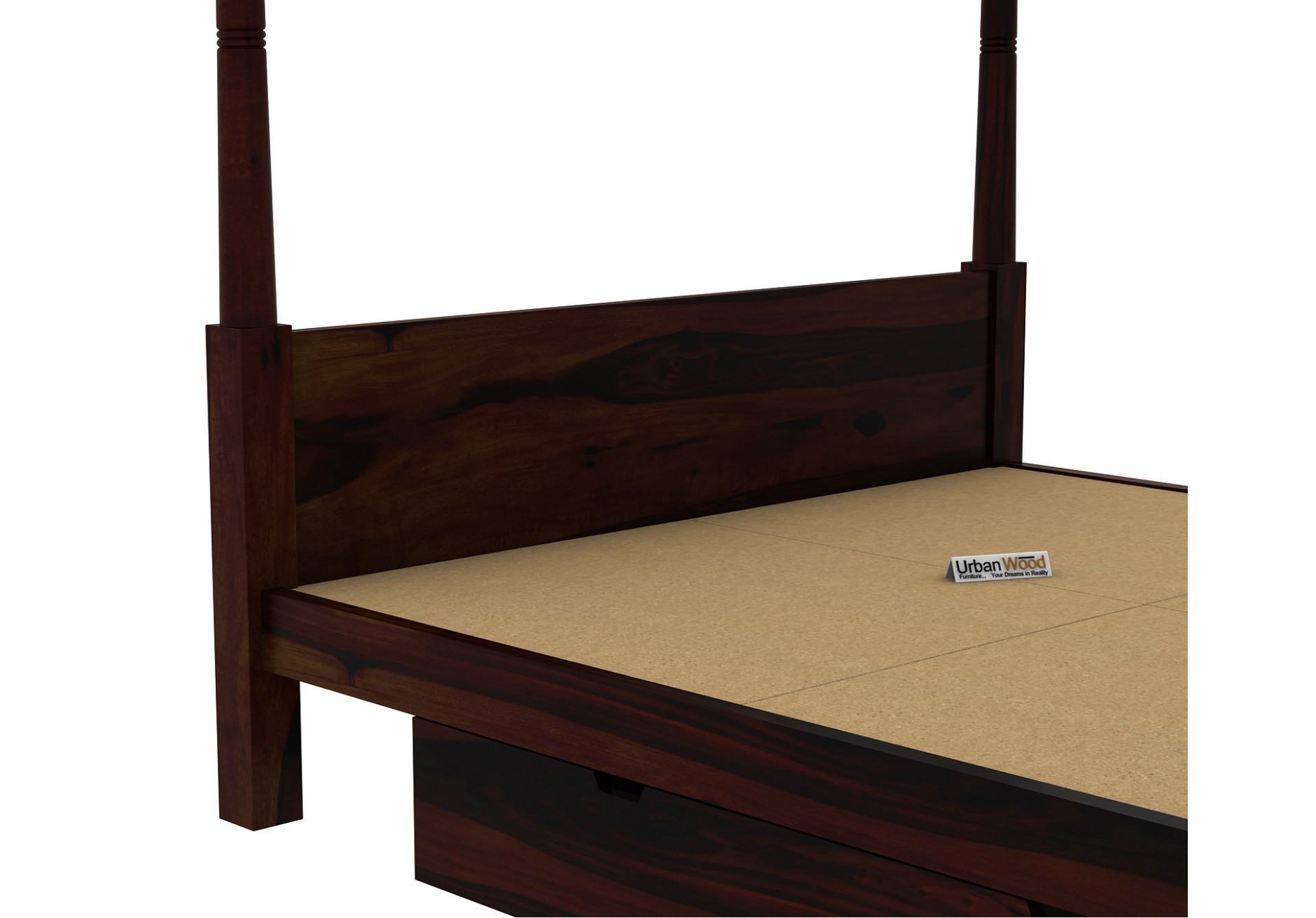 Generic Name -Victorian Poster Bed With Drawer Storage (King Size, Walnut Finish)