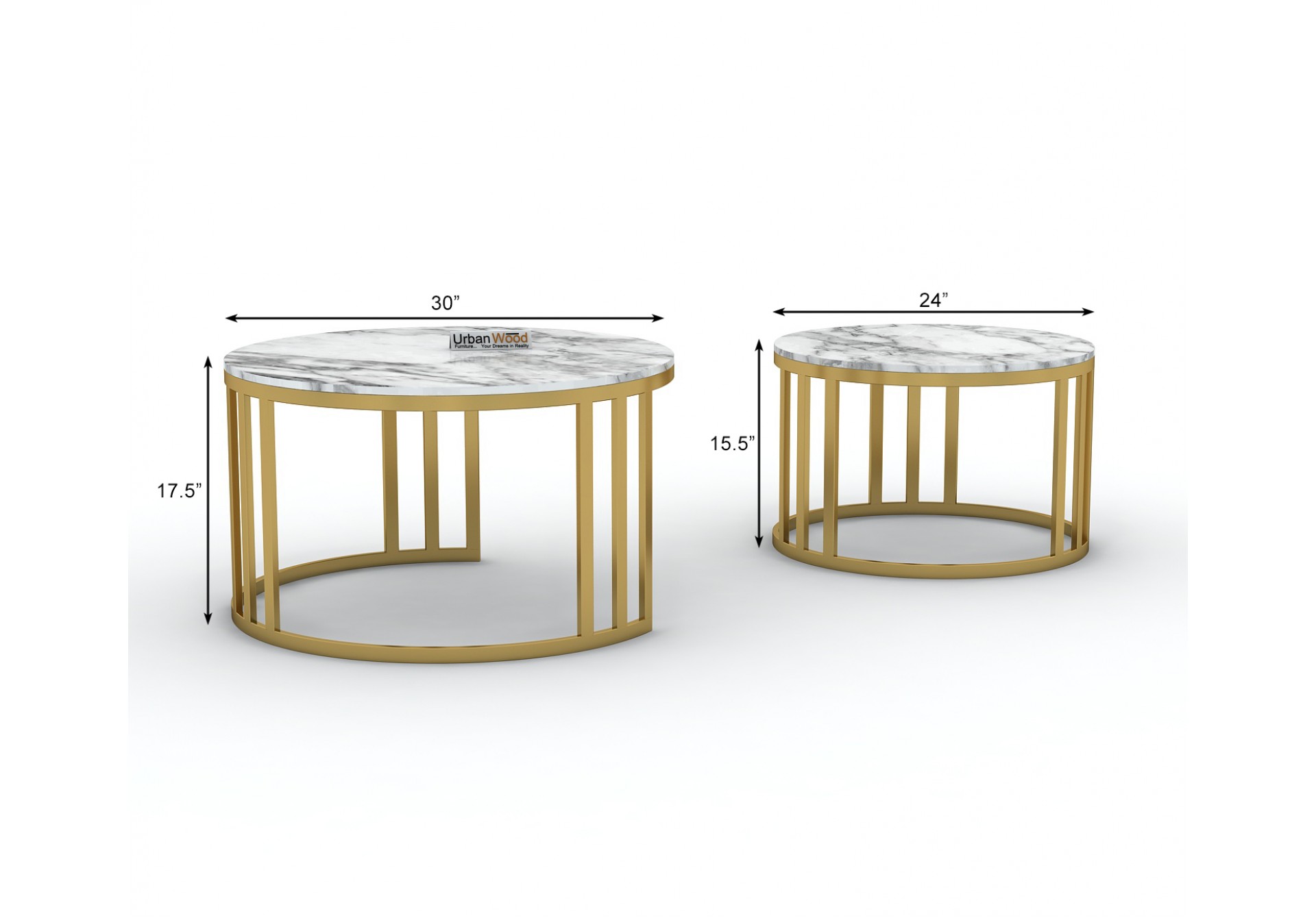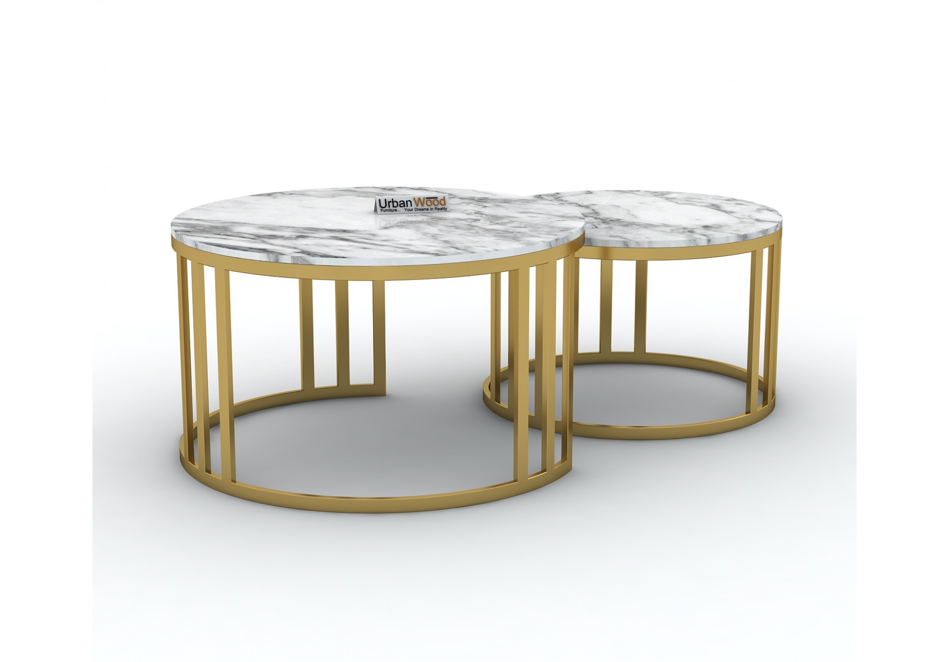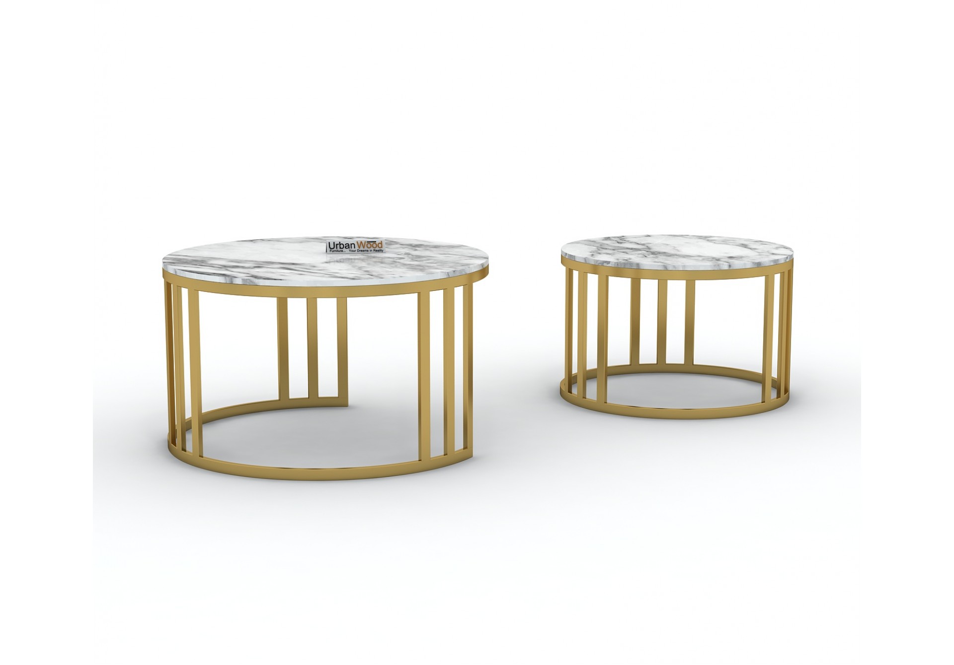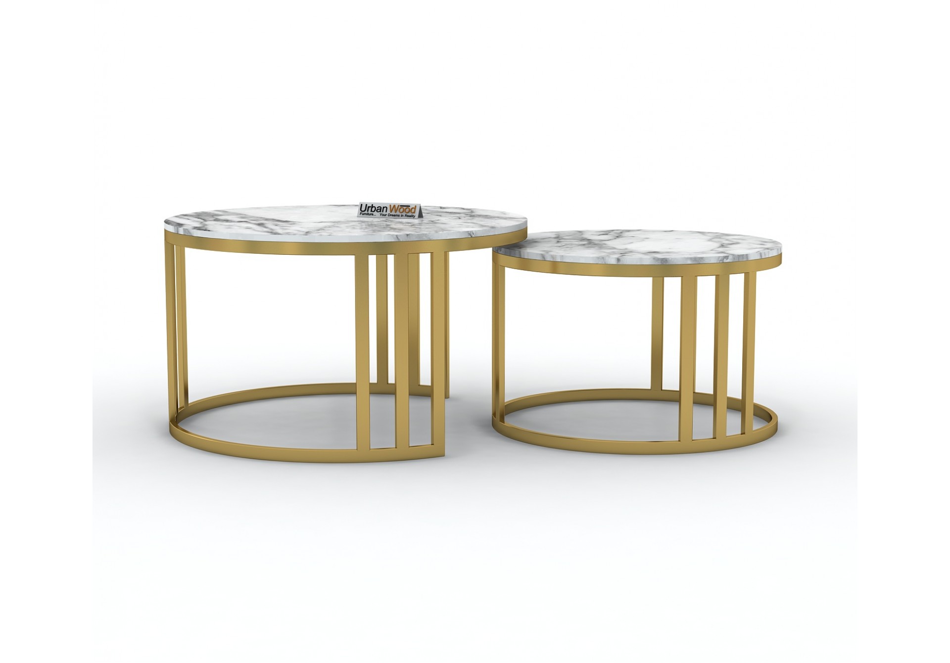 This Vintage coffee table made up of Iron material and golden finish and marble tabletop includ large and a small table.