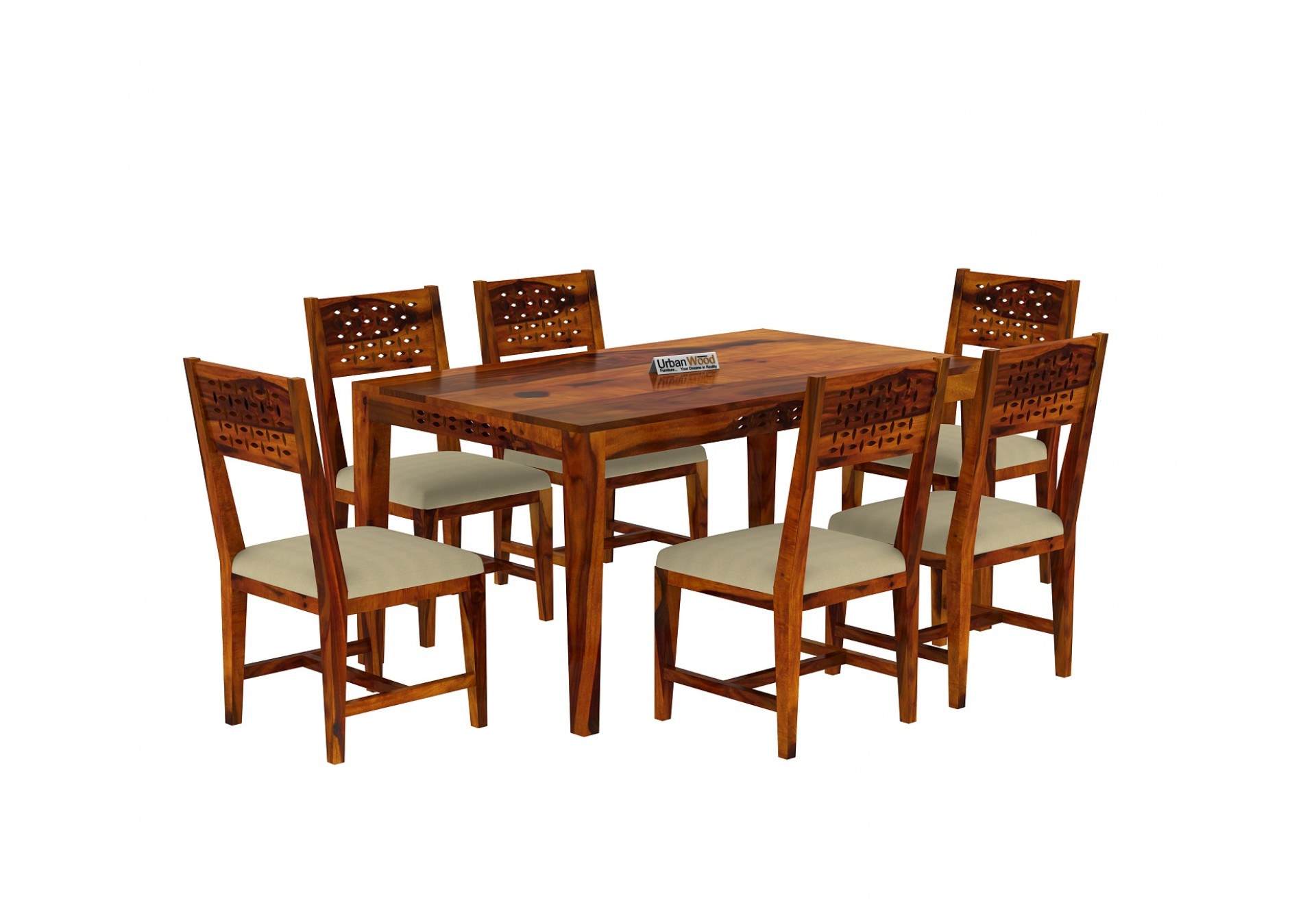 Generic Name -Woodora 6 Seater Dining Set with Cushion (Honey Finish)