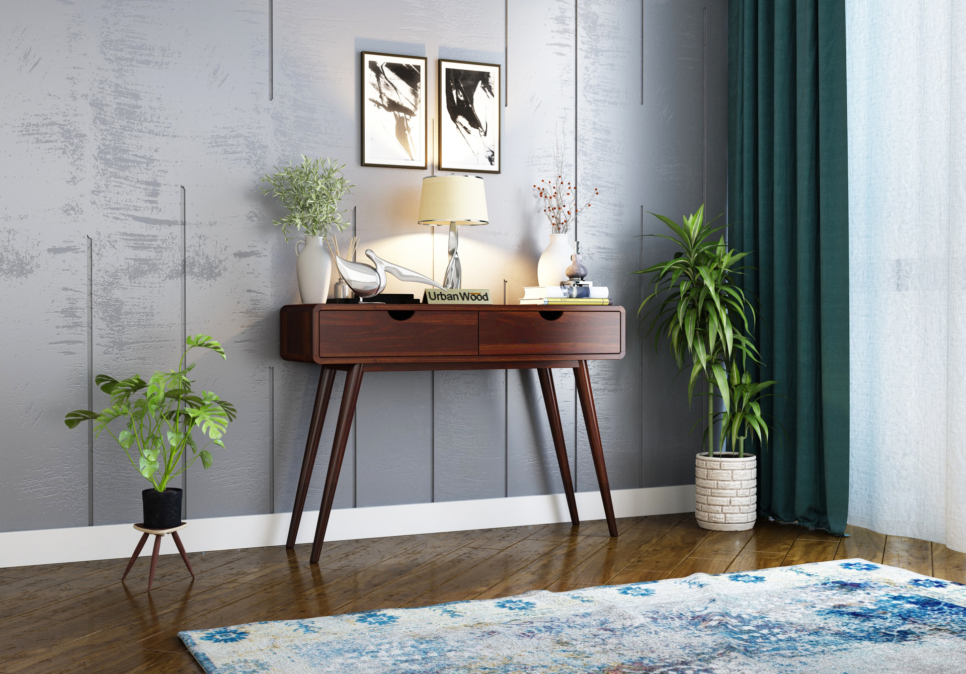 Generic Name -Yarn Console Table with Storage ( Walnut Finish )